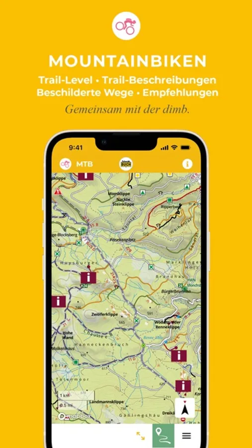 - MTB-Karte mit Trail-Leveln und Beschreibungen (nur Hochharz)