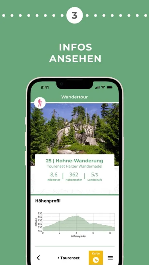 Mit mehr als 270 Touren können Sie direkt in die Harzer Wildnis und Kulturlandschaft starten. Dabei lassen sich die Touren beliebig mit den Karten – Basiskarte, Wanderkarte, Fahrradkarte, MTB-Karte – kombinieren.