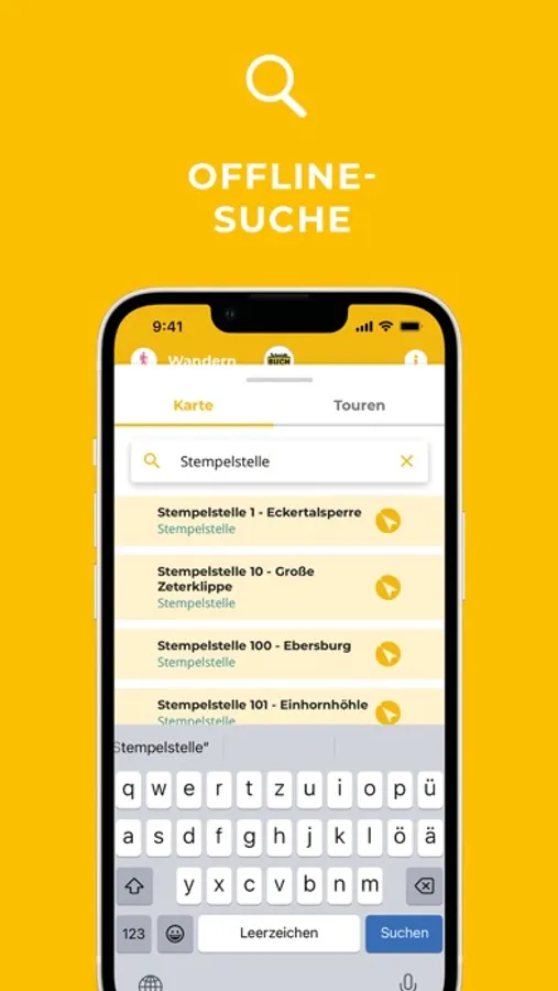 Unsere Suchfunktion hilft Ihnen, Stempelstellen, Berg- und Klippennamen, Sehenswürdigkeiten und viele weitere markante Punkte schnell in der Karte zu finden.