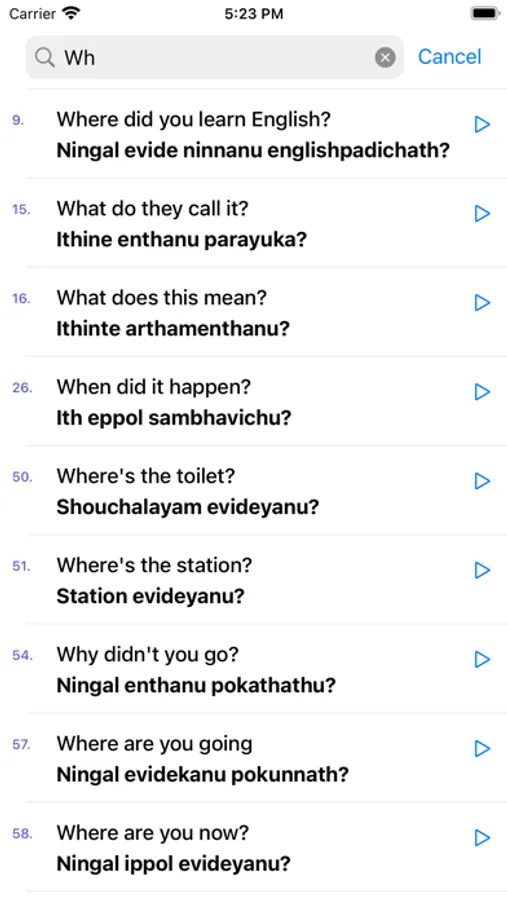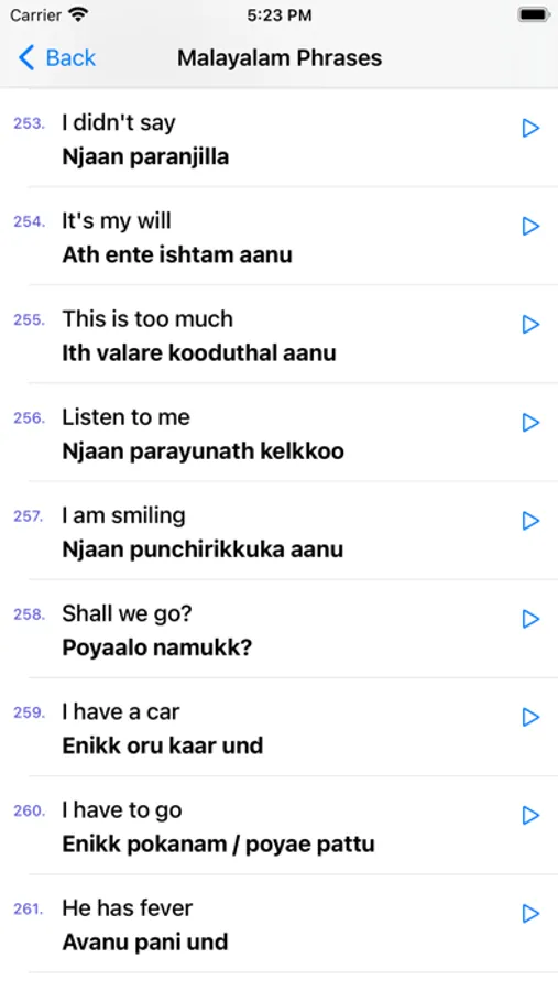 This app helps you to learn Malayalam through English without having to learn Malayalam letters. It has 300 Malayalam words & 300 daily used Malayalam sentences with audio, so you can successfully learn Malayalam language on your own by downloading this app.