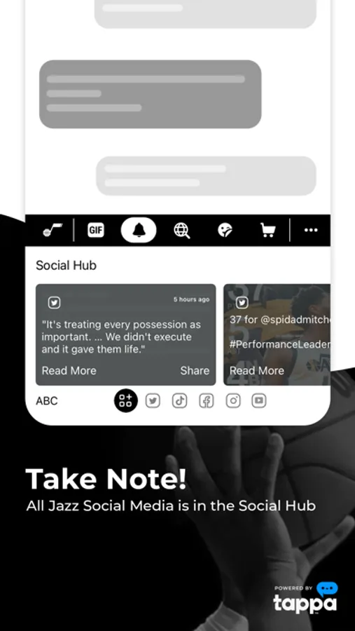Access all Utah Jazz social media feeds (including Facebook, Instagram, and Twitter) right from your keyboard.