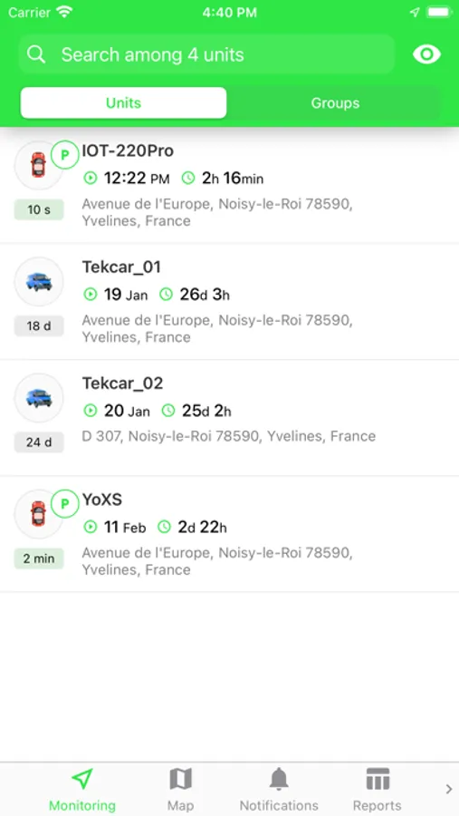 - Unit list management. Get all the necessary information on movement and ignition state, data actuality and unit location in real time.