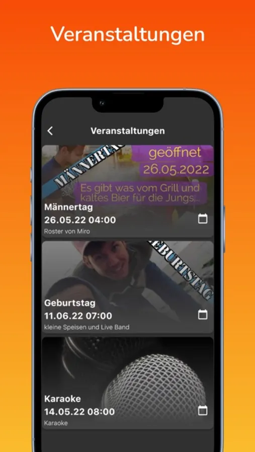 Unter "Veranstaltungen" kannst du deine Partys schon Wochen im Voraus planen.
