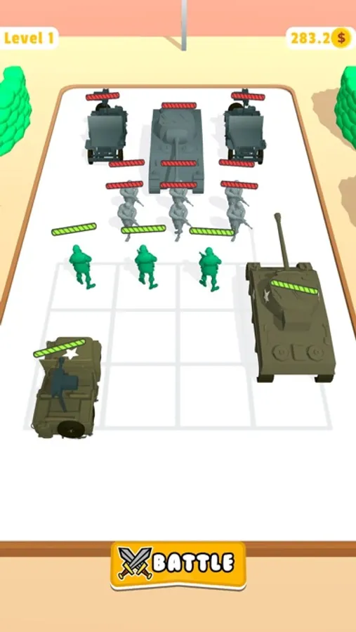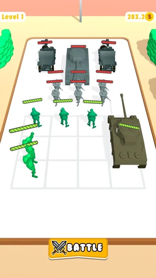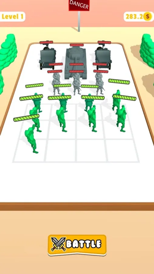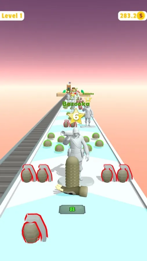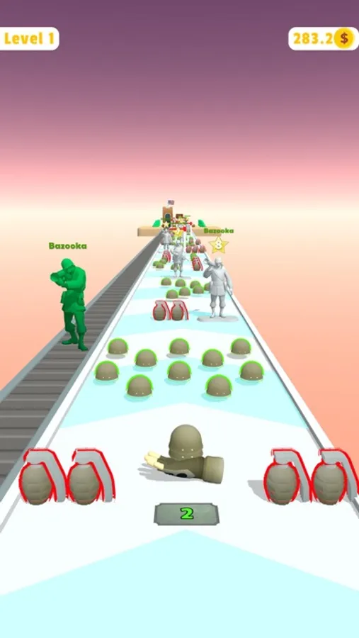 Collect helmets, avoid bombs and obstacles and create your army. Merge your soldiers and battle. Be the best commander!