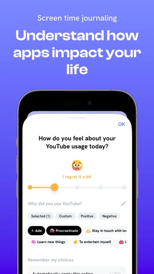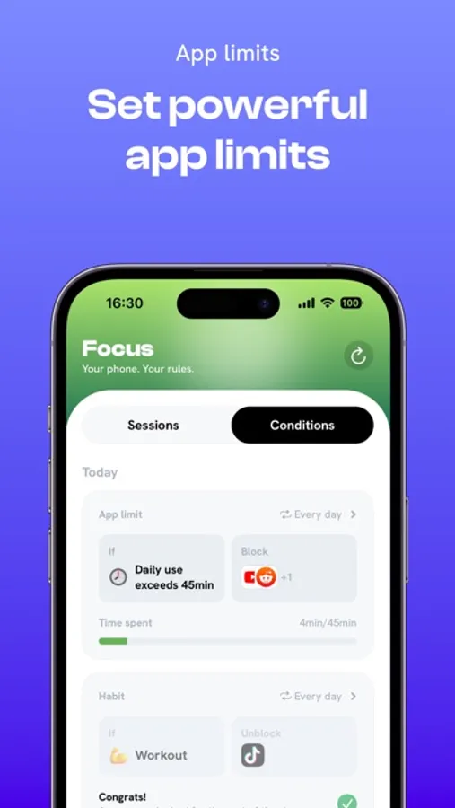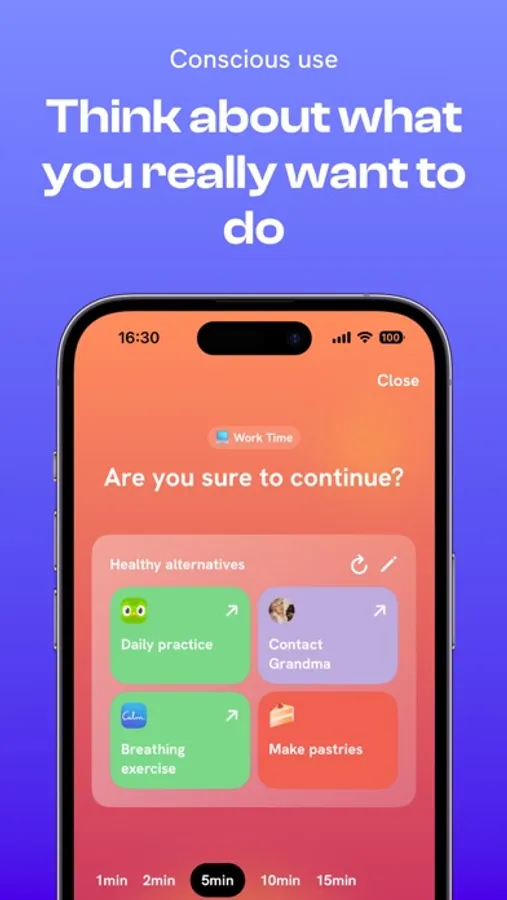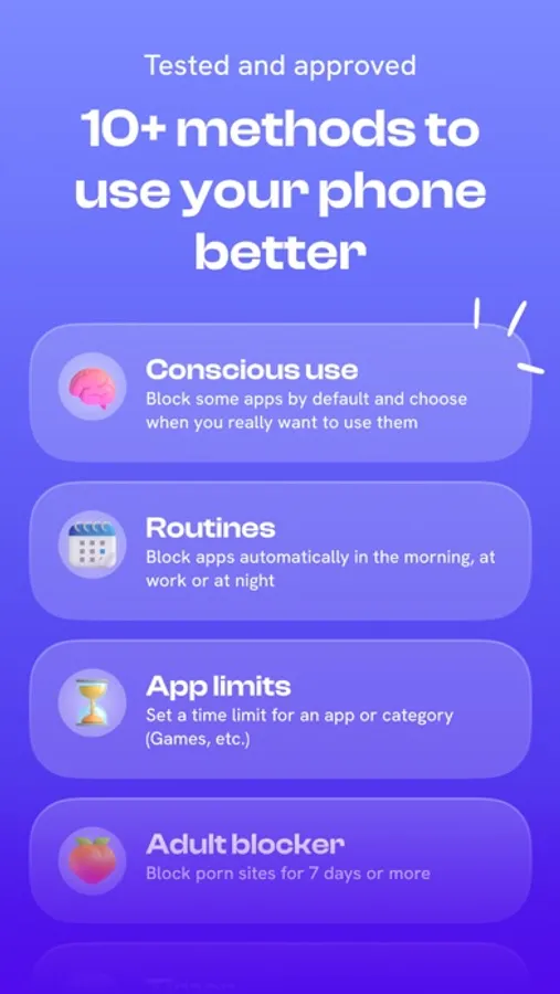 Jomo offers a powerful app-blocking system that will change how you use your phone in the long term. Block one or more apps for the times you set to focus on what matters most. You can always take mindful breaks if you need to.