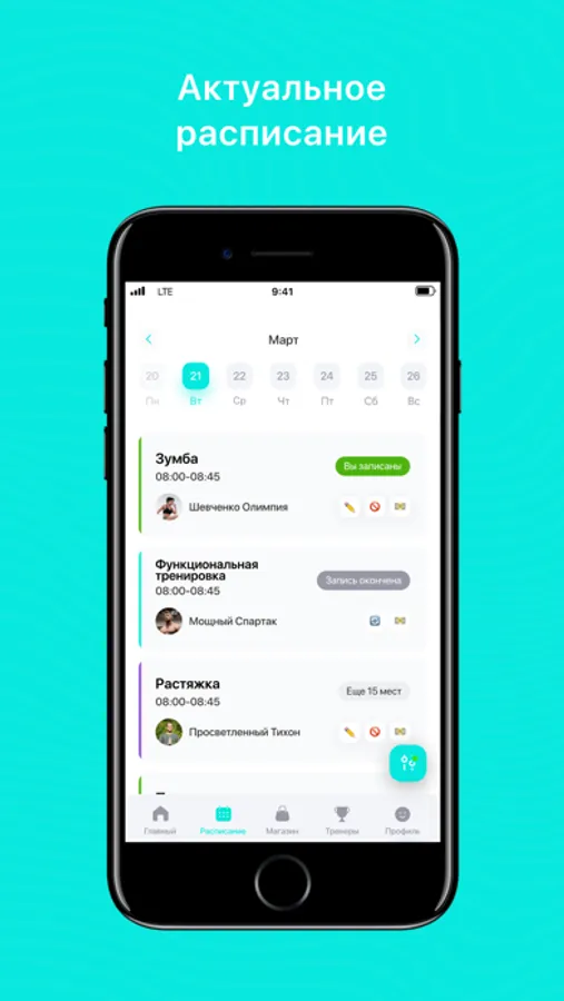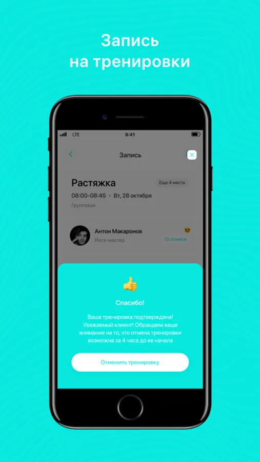 - Получать PUSH-уведомления о предстоящей тренировке;