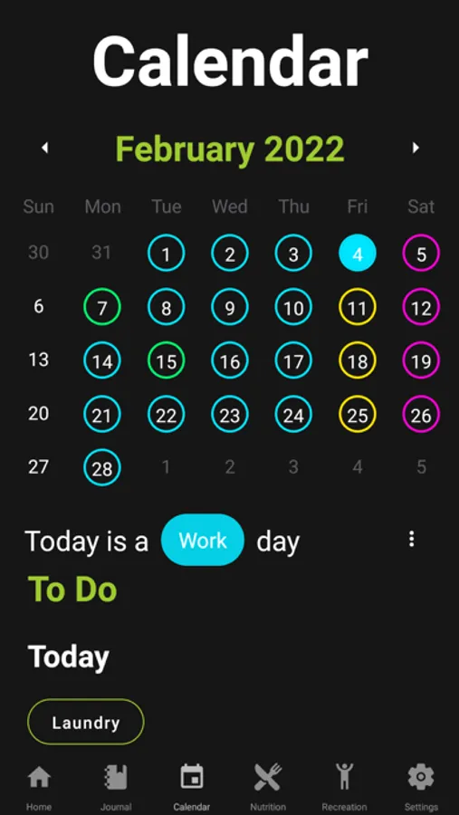 The app contains a block based calendar to help you manage your day and help you stay organized.