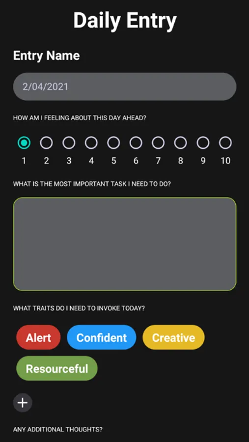 The app has a daily journal with questions designed to keep you focused on your day ahead, help you collect your thoughts, and reduce stress.