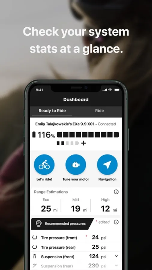 The Trek Central app seamlessly connects with your bike so you can customize motor behavior, track your activities, get real-time range calculations, and use navigation features to figure out where you're going. You'll also get suspension set-up recommendations, service reminders, and more!