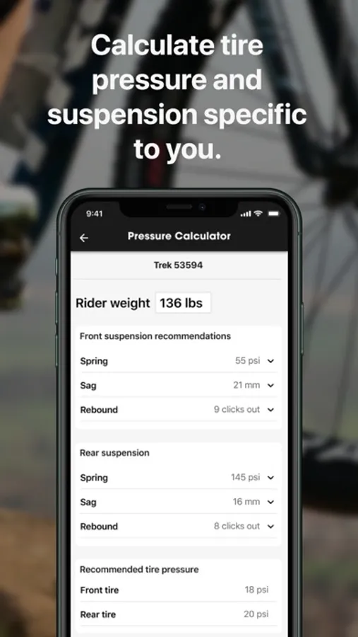 Trek Central provides customized setup recommendations for your suspension settings and tire pressure. Select models like Fuel EXe 9.9 even incorporate Quarq TyreWiz and RockShox AirWiz sensors that let you know whether your pressure is high, low, or just right with a quick glance at Trek Central’s Ready to Ride screen. One-click connect pairs your sensors to your phone automatically when you connect to your bike.