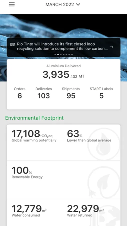 The START platform is available on your desktop and as a mobile app. Once registered, you will be able to view your sustainability insights, manage your orders and documents for all your Rio Tinto purchases.