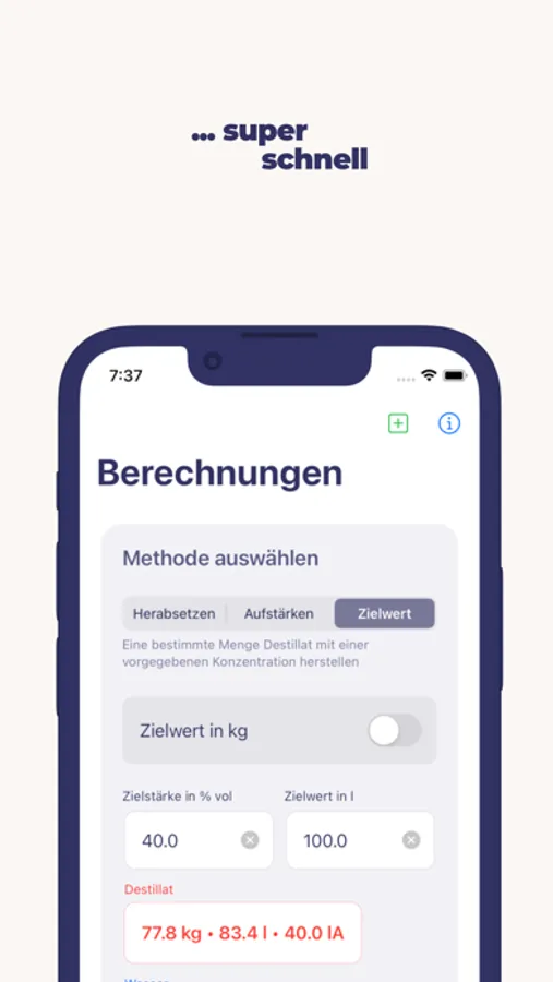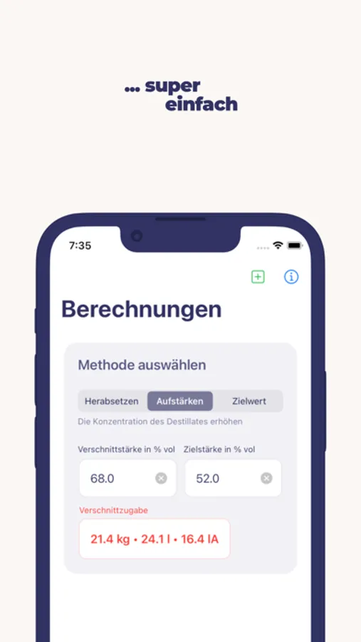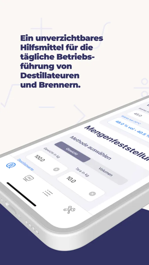 Diese Anwendung richtet sich an Destillateure, Brennereien, Hobbybrenner und Betriebe, die regelmäßig Alkohol verschneiden müssen, wie z. B. auch Apotheken. Mit Alculate können Sie alle Berechnungen der üblichen Betriebsführung einer Brennerei erledigen. Dazu zählen Temperaturkorrektur, Mengenfeststellung und verschiedene Verschnittberechnung, Herabsetzen und Aufstärken. Ihre Messwerte können Sie in der App dokumentieren und bei Bedarf in Ihr Tabellenkalkulationsprogramm übernehmen.