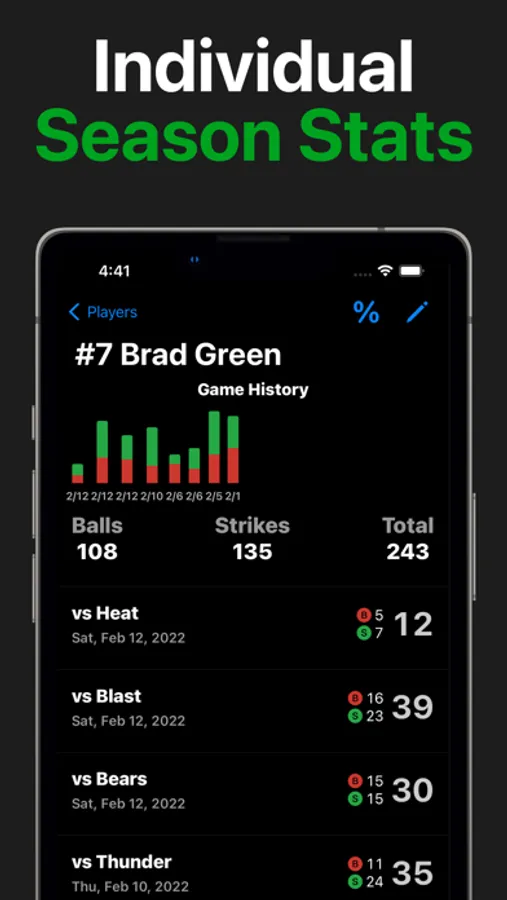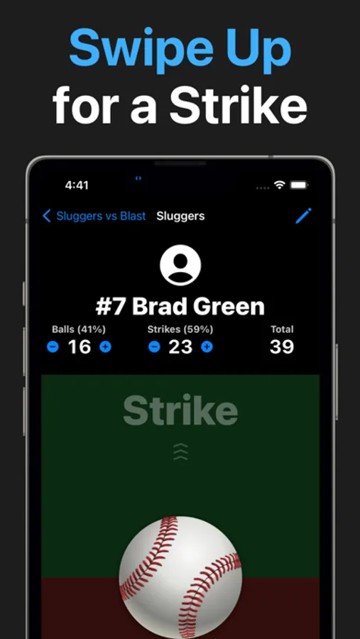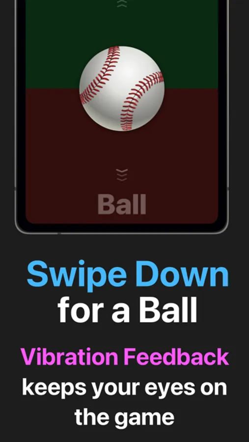 Swipe up for a strike. Swipe down for a ball. Vibration and sound feedback keep your eyes up on the game without having to look down at your phone.