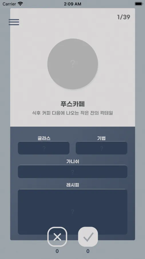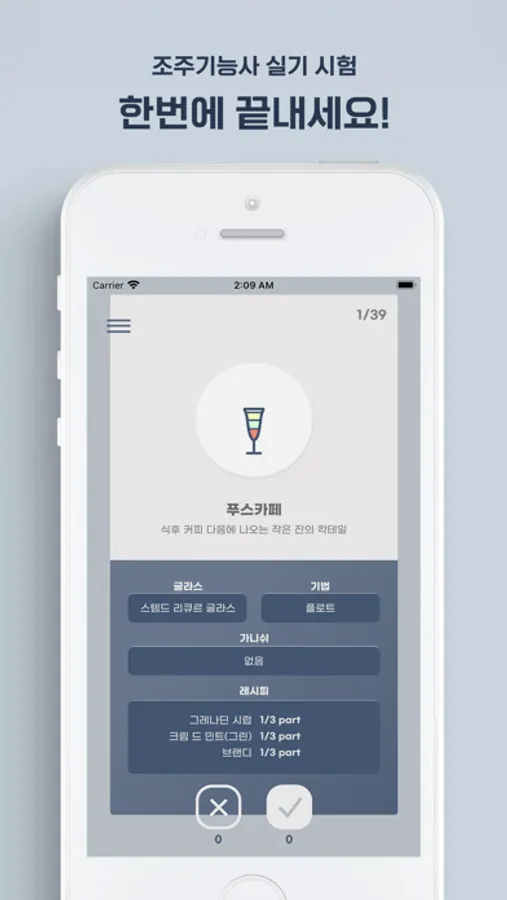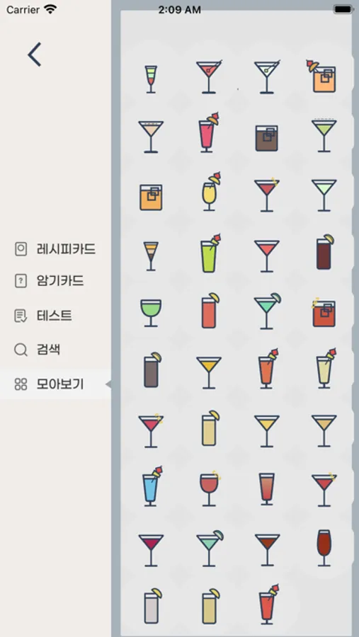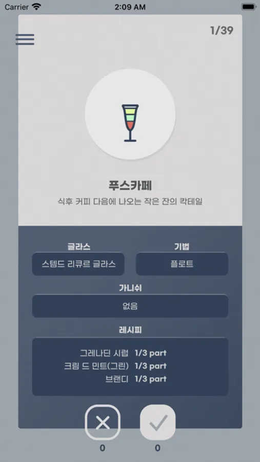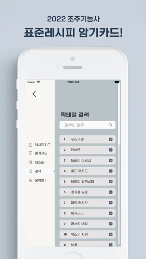 레시피/ 가니쉬/ 조주법을 가리는 암기카드 모드를 지원합니다!