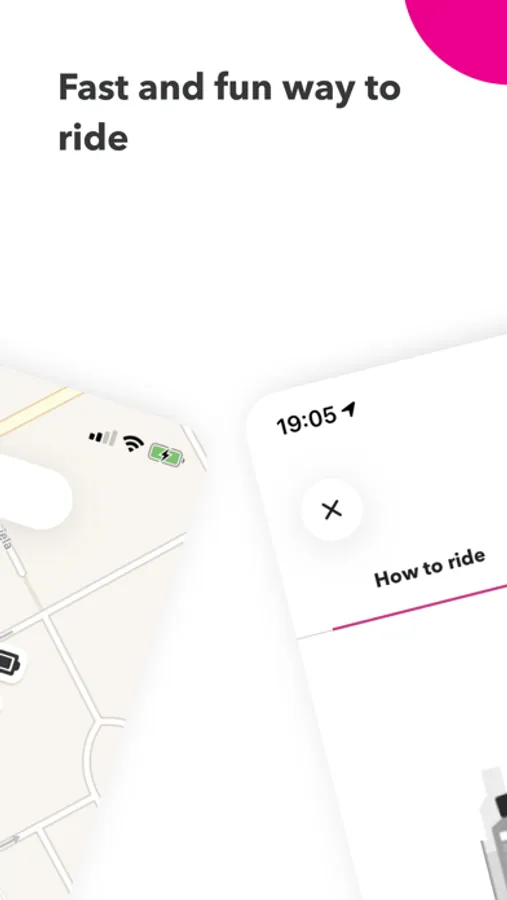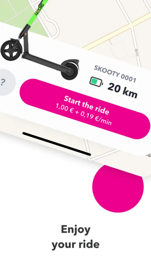 You can use the app to find the next e-scooter and unlock it. After your ride, you can put the e-scooter down again.