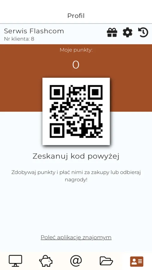 W celu otrzymania punktów każdy użytkownik aplikacji powinien okazać qr kod z aplikacji przy stanowisku kasowym.