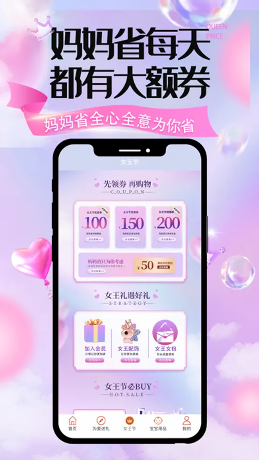 妈妈省是一个可以帮助各位妈妈网购省钱的APP,我们与数百万线上一线商家合作,每日精选推出近万件大额内部优惠券。