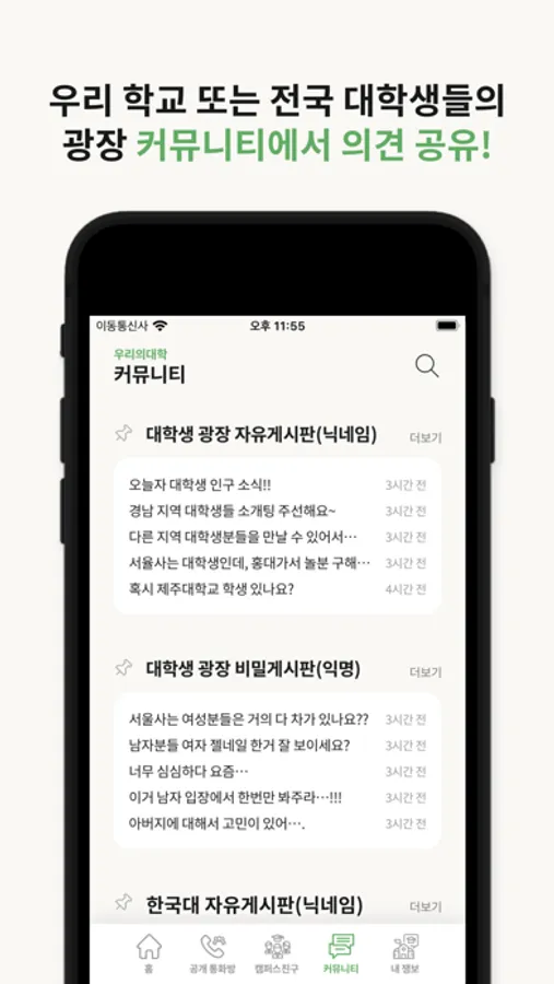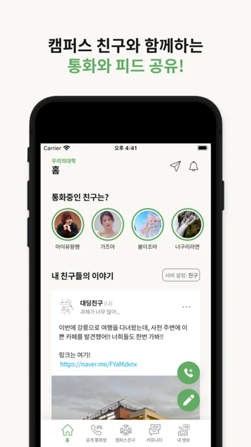 ● 캠퍼스 친구를 사귀고 서로 피드를 공유하며, 통화를 해보세요