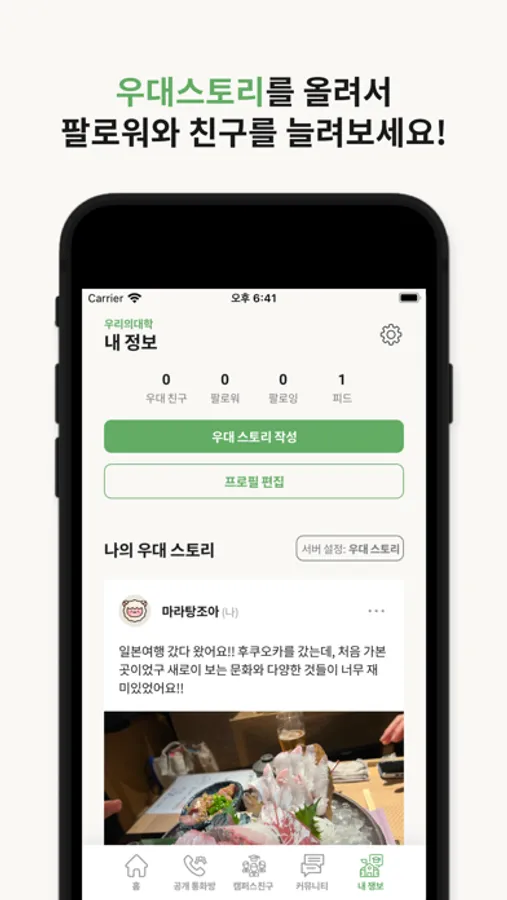 ● 우대스토리를 올려서 팔로워와 친구를 늘려보세요!