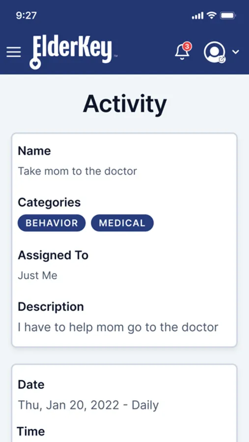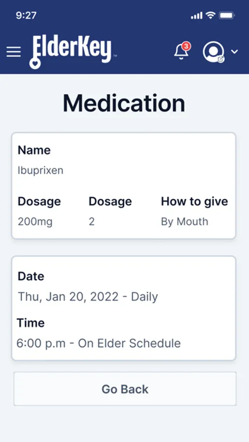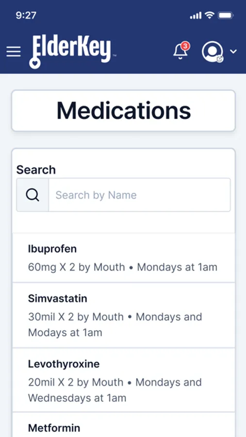 Activities, Instructions, Documents, Contacts, the Medication List, and the Elder’s Medical History information can all be directly retrieved through ElderKey Mobile.