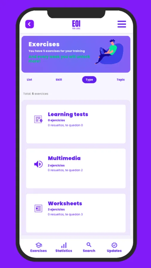 EOI Por Libre es la única App que te prepara estratégicamente para los exámenes de certificación de la Escuela Oficial de Idiomas.