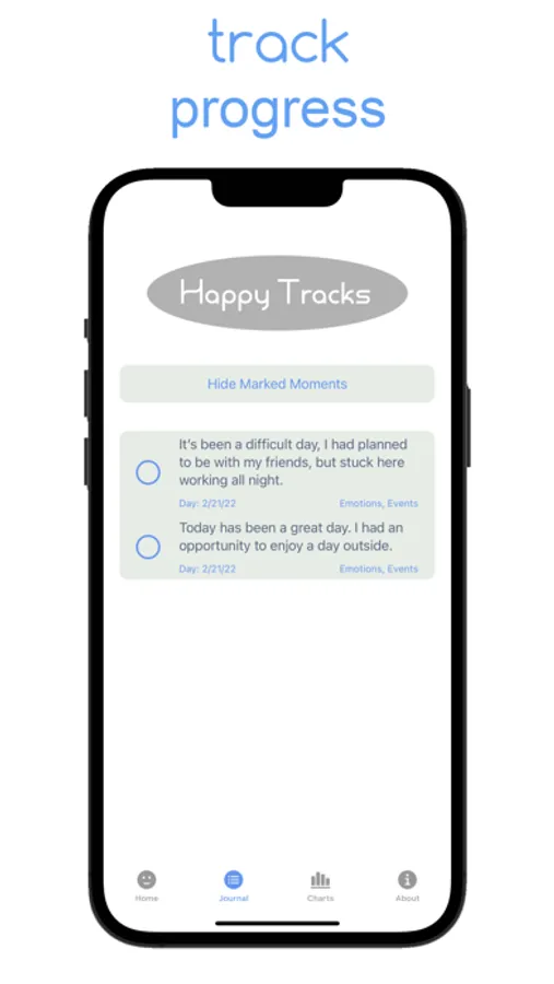 Happy Tracks is the easiest way to journal and capture your emotions, like your diary and life coach in one. Jot down and then let go of your thoughts & feelings and create a happier you.