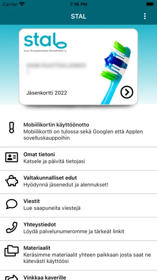 Suun terveydenhoidon ammattiliiton mobiilijäsenkortti