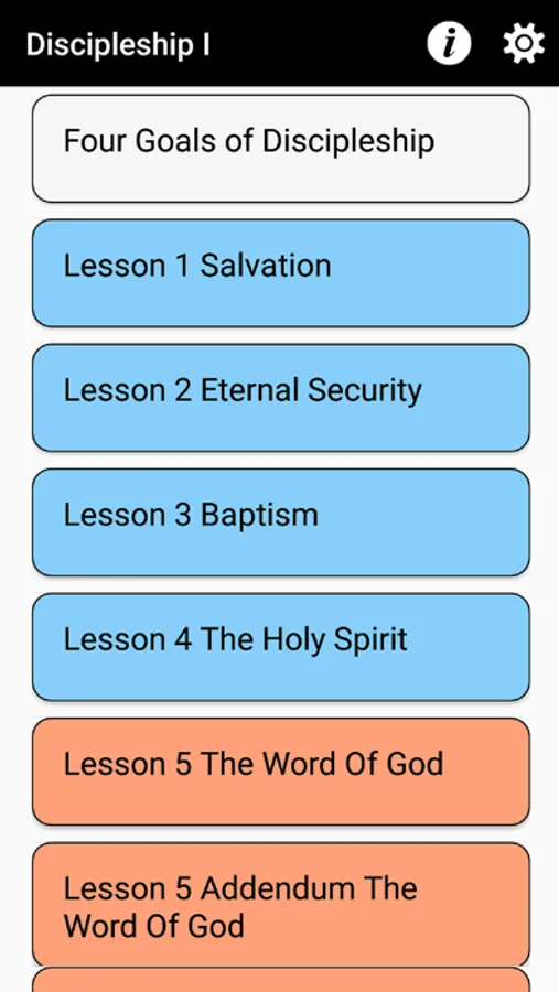 We've created this app with 16 basic, fundamental topics of the Christian life
