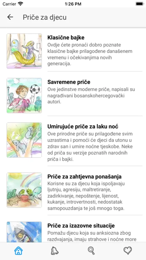 The focus of the application is on learning correct speech, diction and building children's vocabulary. Therefore, all the stories were narrated by professional narrators and famous Bosnian actors and actresses.