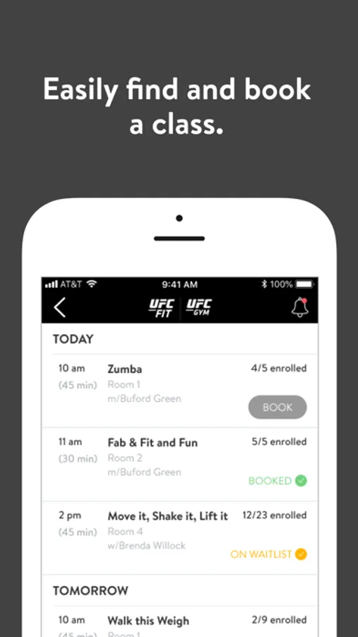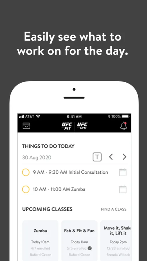 The UFC GYM+ app provides class schedules, social media platforms, fitness goals, and in-club challenges. Our app will also allow you to link many of the popular fitness tracking devices and fitness apps on the market. It uses HealthKit to save your workouts, so they can contribute to your fitness goals and challenge progress.