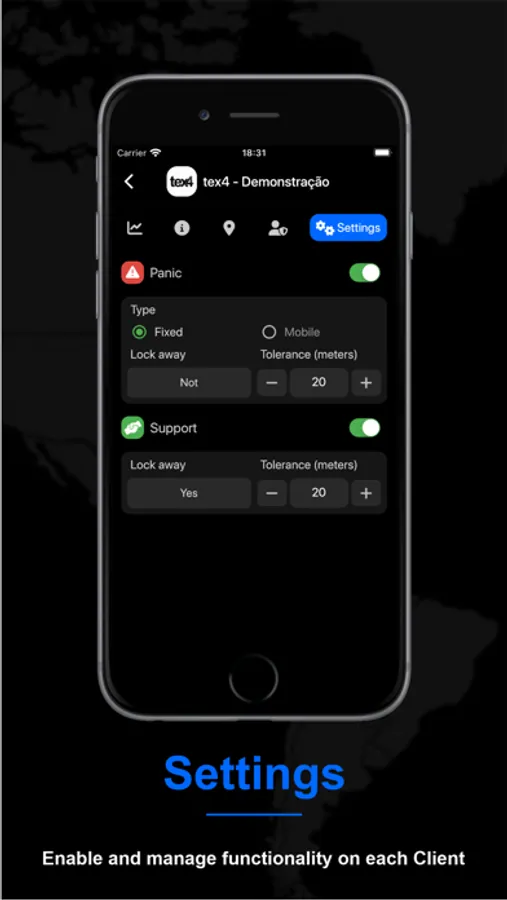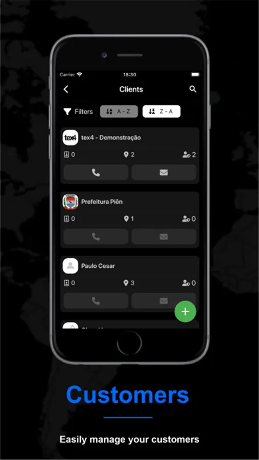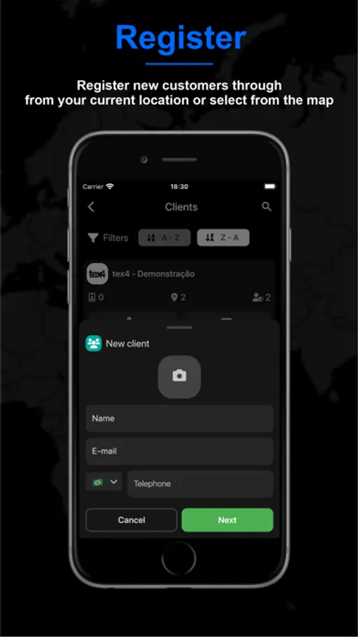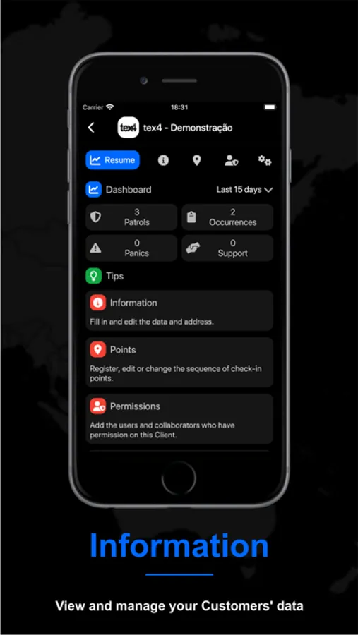 Through tex4 for Companies you can register your customers, check-in points, functionalities, users and collaborators.