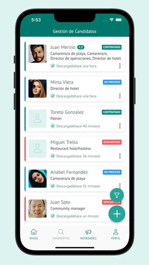 - Aplica los filtros y se mostrarán los candidatos/as que mejor se ajustan a las necesidades de tu vacante.