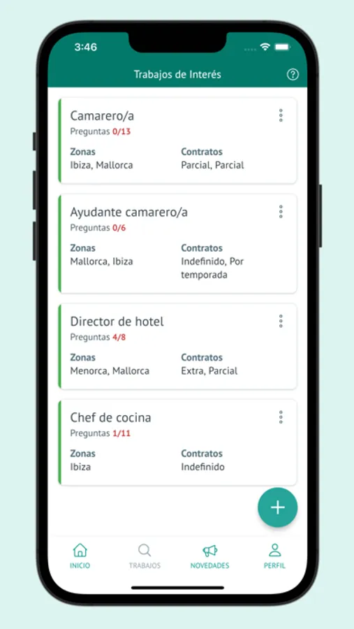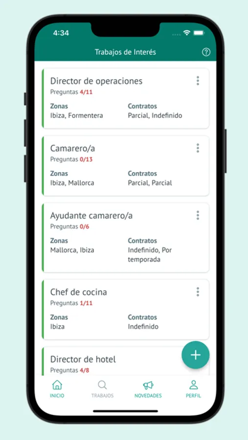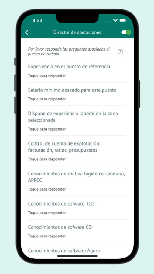 - Elige los puestos de trabajo en los que te gustaría que te llamaran respondiendo a las preguntas relacionadas.