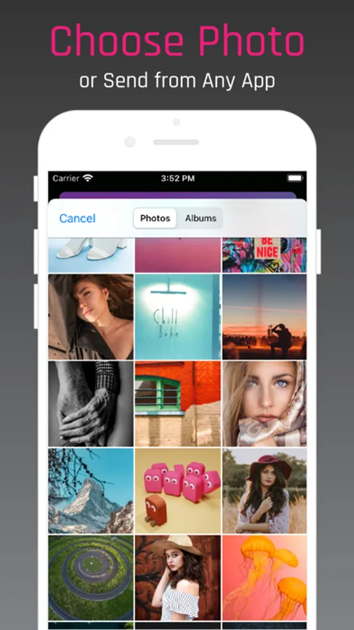 • Send any photo to PhotoFrame app from iPhone Photos and other apps directly through Share widget.