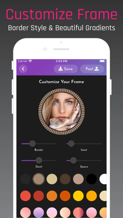 • Beautiful hand-crafted solid colors and gradients to choose from, for the frame.