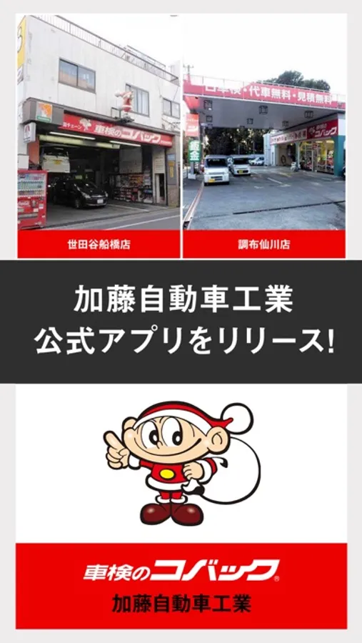 車検のコバック世田谷船橋店・調布仙川店を運営する加藤自動車工業は、世田谷区・調布市に住む皆様が快適にドライブできるよう車検だけでなく板金、保険、お車のコーティング、レンタカーなどお車に関わることなら幅広く取り扱っております。 昭和42年に東京都世田谷区で創業して以来地域に根ざし、「長年の経験で安心安全なカーライフ」をのご提供をモットーに取り組んで参りました。 世田谷区、調布市、杉並区、狛江市にお住まいの皆さん、車検にいくらかかるか不安…、車が故障してしまった!車にキズがついてしまった!など自動車でお困りのことがあれば、なんでも加藤自動車工業へご相談下さい。