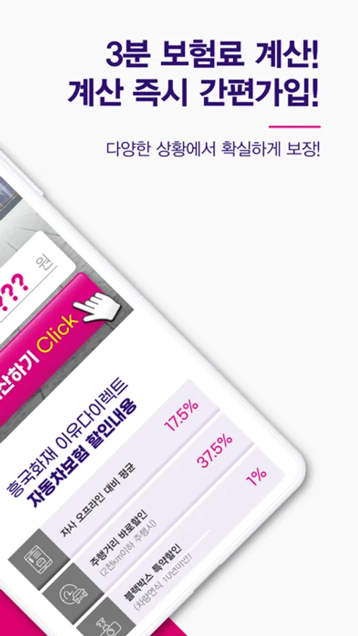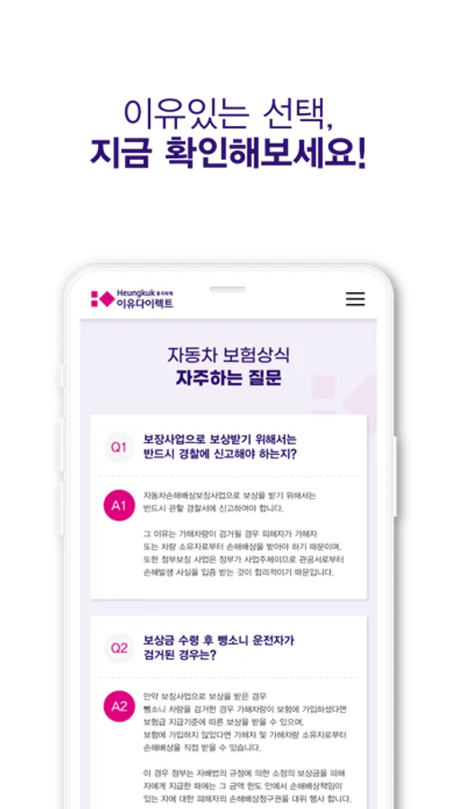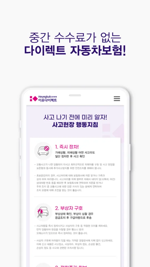 흥국화재 다이렉트 자동차보험 견적산출 및 가입상담을 할 수 있는 모바일 대리점 앱입니다.