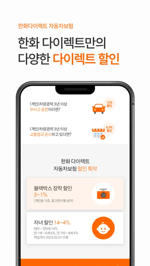한화손해보험 다이렉트 자동차보험! 보험료 계산부터 가입상담까지 언제든지 편리하게!