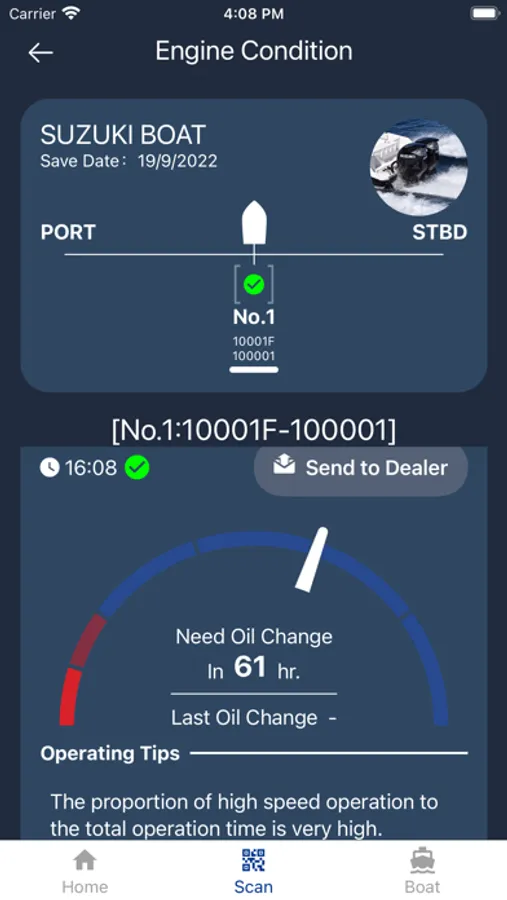 - In order to calculate the timing to change the engine oil, you need to provide the engine data to Suzuki Motor Corporation. Suzuki save the engine data after deleting part of the data such as engine number, which can identify the personal information.