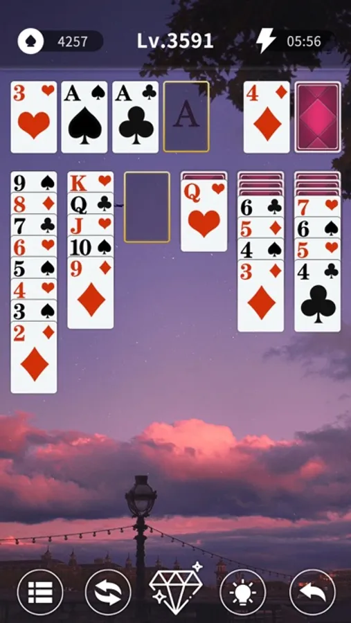 If the game cannot continue (when there are no more cards to move), you can draw a new card by pressing the pile of curds in the corner. One card is placed per line. If there is even one blank line, you cannot draw.