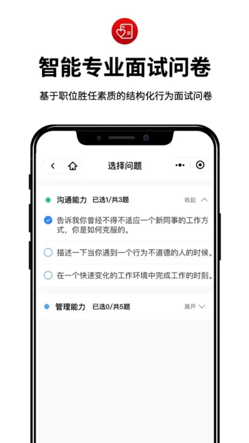 由心理学家、人力资源专家和IT技术人员共同研发,基于胜任素质的面试指导系统,几分钟内创建专业面试指南,消除面试过程中的个人偏见和主观判断判断。
