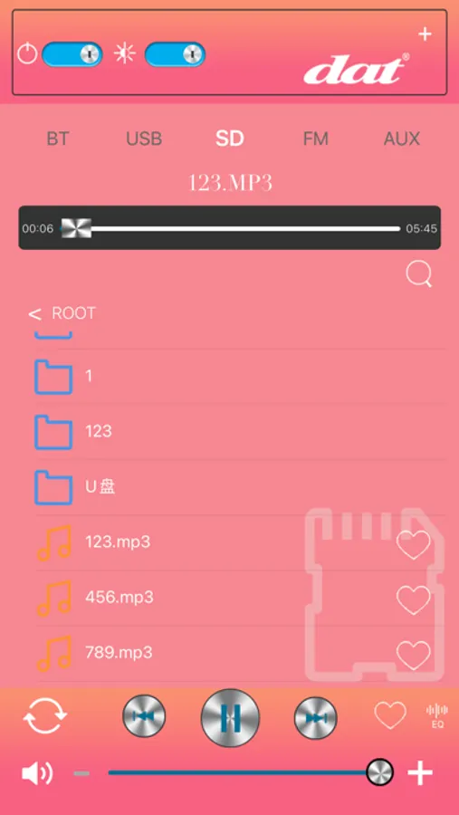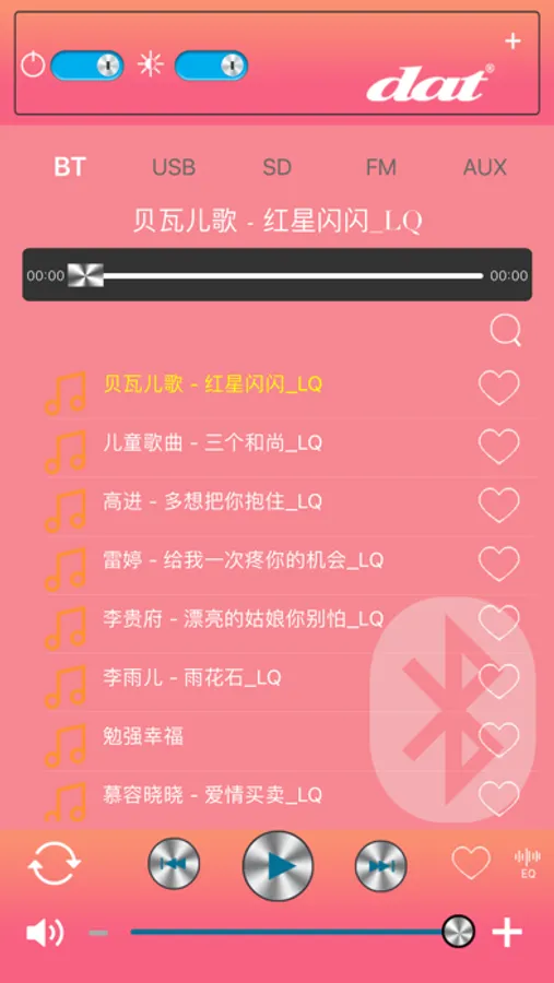 This application can control trolley speaker, power amplifier under bluetooth connecting. You can control the input of different audio signals and implement their multiple functions.