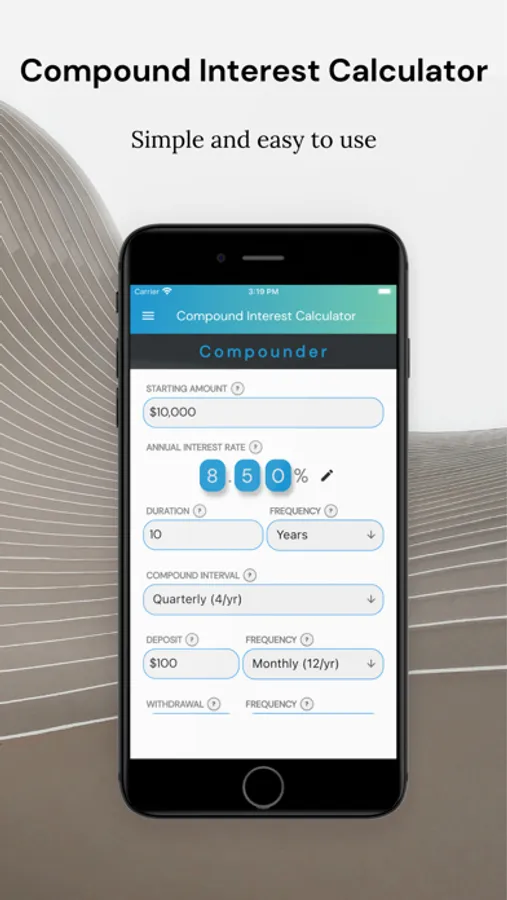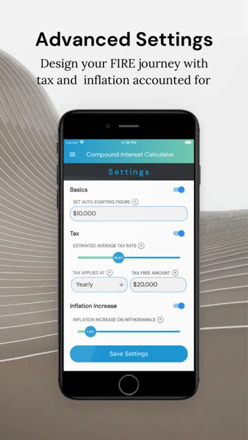 Calculate compound interest with ease using the Compounder Tool. This is a smooth and intuitive compound interest calculator (aka FIRE Calculator) that helps you calculate and plan out your future earnings so you can achieve Financial Independence and Retire Early. Start planning to stop working today.
