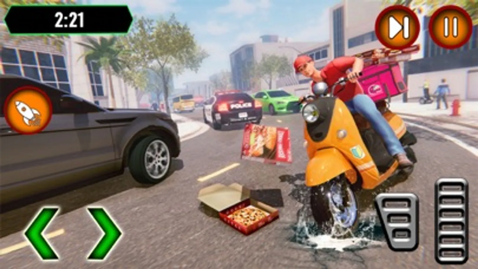 The story of the pizza delivery boy who deliver the fast food in different locations of the city within time duration. Pick up junk food from a pizza restaurant and deliver on assigned location. A pizza boy rider picks up a parcel from a different junk hot pizza food restaurant and deliver on assign locations such as home of the town. You will order any fast food from the pizza maker shop and drop your current location for food delivery. The good pizza delivers to your current location within the limited time.