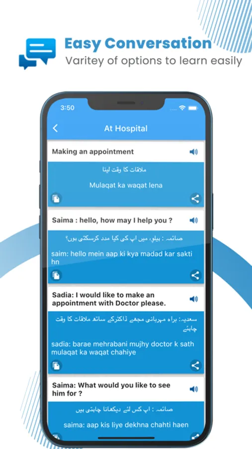 - Translations – English to Urdu, Urdu to English with Roman.