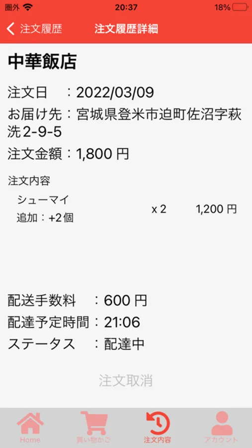 ・ご注文を確定する前に、配達予定時間、お届け先住所、合計金額が表示されます。お支払いはカード決済、現金のご利用が可能です。