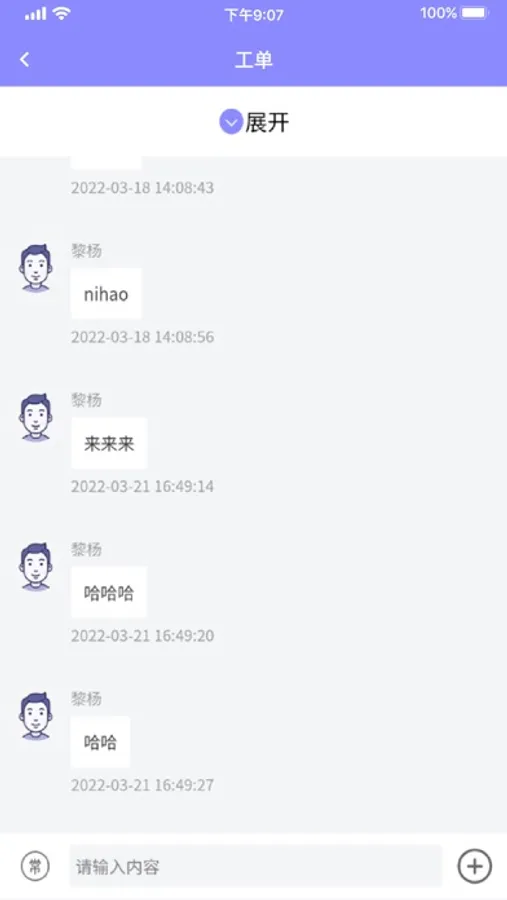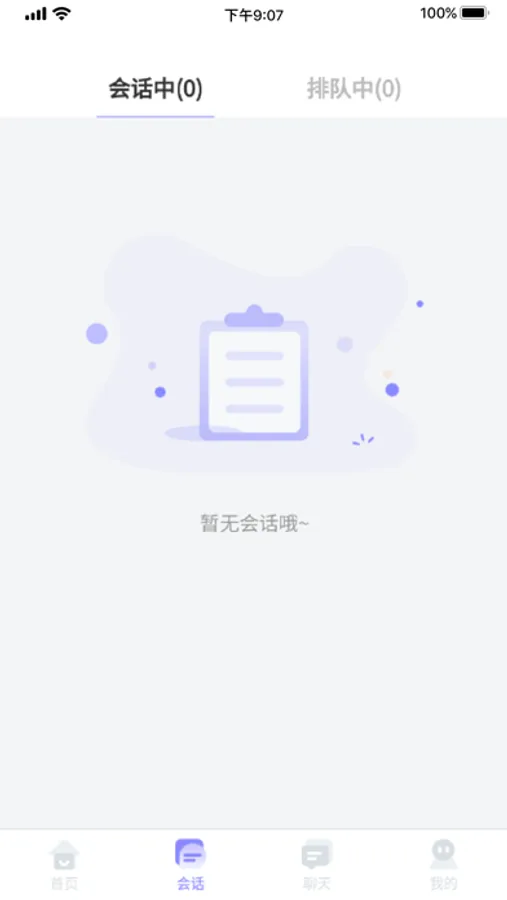 会话:包含 客服可与客户进行对话,支持发语音、文字、表情、图片,拍照(将这段会话转给内部同事)、邀请评价功能;