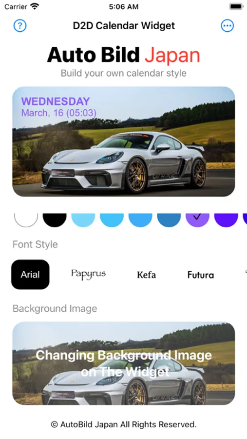 This is a widget for the Japanese version of AUTO BILD, a car information website. It provides car lovers with a calendar function and photos in the widget. Detailed car information can also be viewed and downloaded. Photos are automatically changed every 15 minutes.