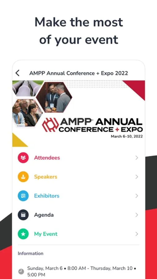 The AMPP Annual Conference + Expo App is the official app created for events hosted by The Association for Materials Protection and Performance. This app allows users to engage digitally with our content. View schedules, technical programs, speaker information, exhibitor information and interact with social networking all with user-customizable settings. These are some of the features within the app: My Schedule - customize your own event schedule; Surveys - share your feedback about the event; Speakers - see information about who is presenting; Exhibitors - browse exhibitor profiles and find them on the exhibit hall floor. AMPP helps connect our global audience at our events with this app. Download today!