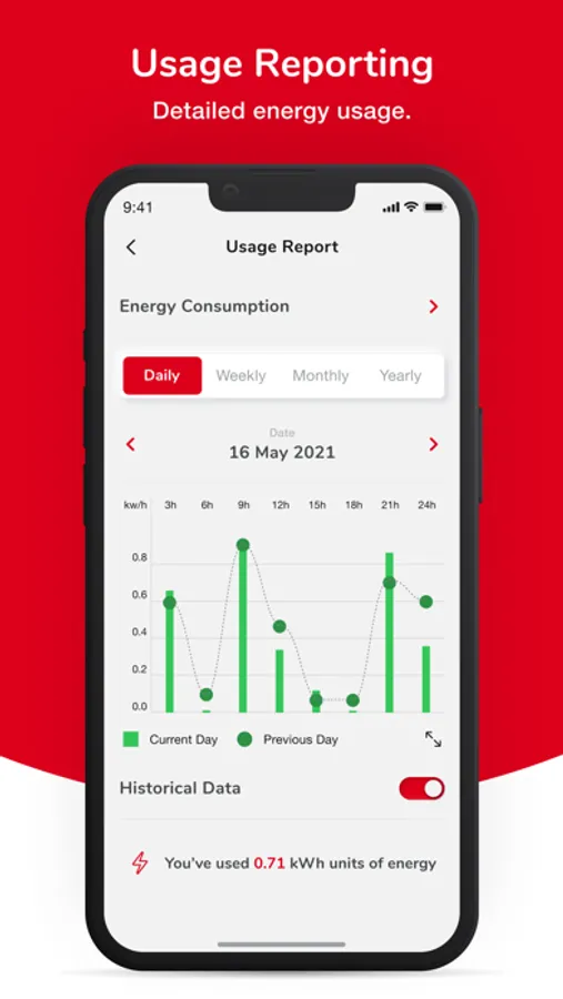 - Quickly access usage reports detailing energy consumption